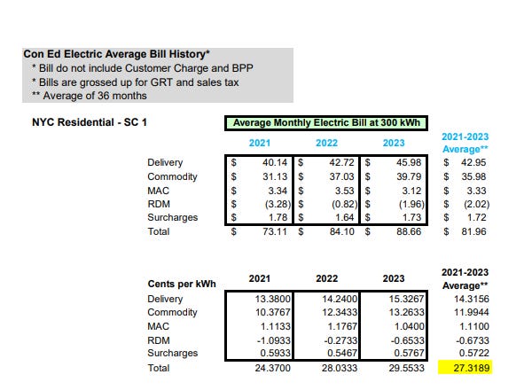 Here is an average Monthly bill that Con Edison customers have gotten: